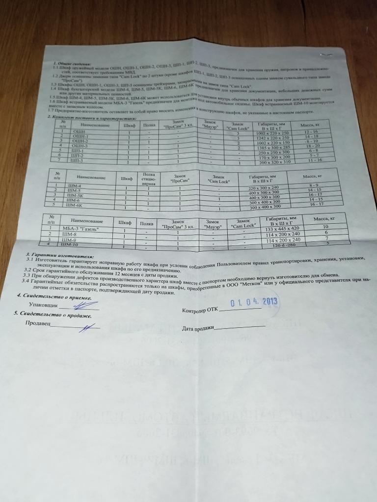 В общем предложение следующее: Сейф оружейный ОШН-1 на две единицы,в идеальном состоянии,не коцаный,не царапаный. Все ключи и комплектующие на месте и даже паспорт с магазина прилагается. У меня в нём спокойно умещалось и хранилось 3 единицы. Сайга-12,МР-155 и ИЖ-39. ИЖ-39 со стволами 750мм и длинным затыльником стоял целиком не располовиненный. Размеры: Высота-124,Глубина-25,ширина-22. Цена 3000 рублей. Звоните-пишите. Телефон (927)706-39-29. Обоснованный торг приветствуется. Касаемо доставки... Каждый рабочий день бываю в Нефтегорске,еду туда со стороны Кинеля через Богатое и могу в те края его доставить без проблем,ну или вечером в Кинеле или Малой-Малышевке. Последний раз редактировалось pitstop; 04.12.2023 в 18:10. |