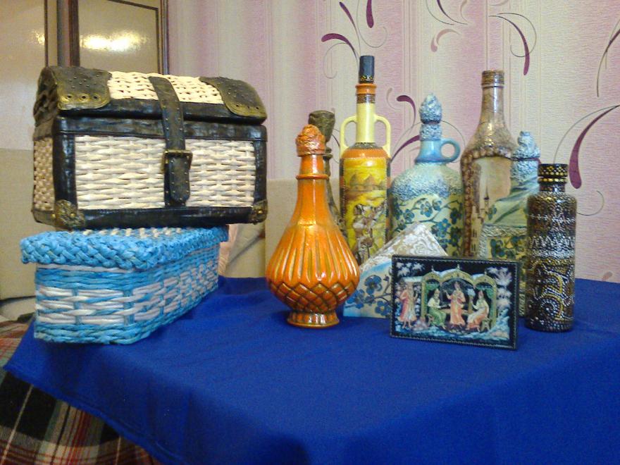 Озвучены цены только на бутылки. От 300 до 500 р. Всё остальное как образец её работ. Хотя... Как договоритесь.