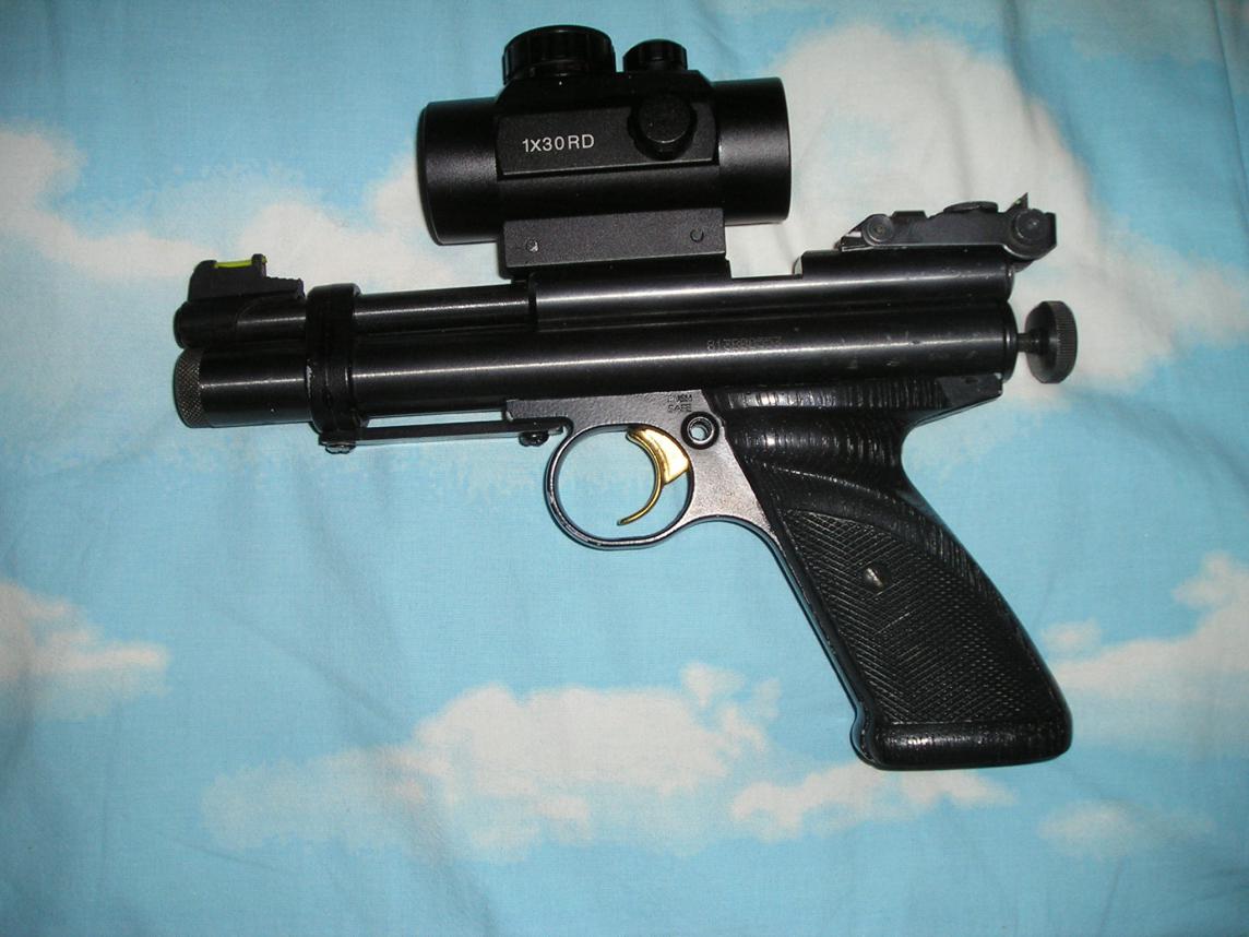 что сделано: обрезан ствол, СМ Кимвера, регулируемая задняя пробка, стальная коробка, целик от иж53 с оптоволоконными нитями, мушка тоже с оптоволокном. Перепуск фторопласт. Клапан БЕЗ вмешательств. Сифонов нет. скорость 120 граммовой пулей на минимуме регулировки. хватает на 40 пуков. Коллиматор, кофр.